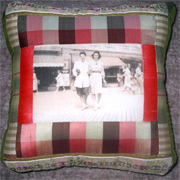 I transfer your cherished photo or photos to fabric and create an original pillow with coordinated swatches. Smaller photos could be enlarged. Your originals are returned